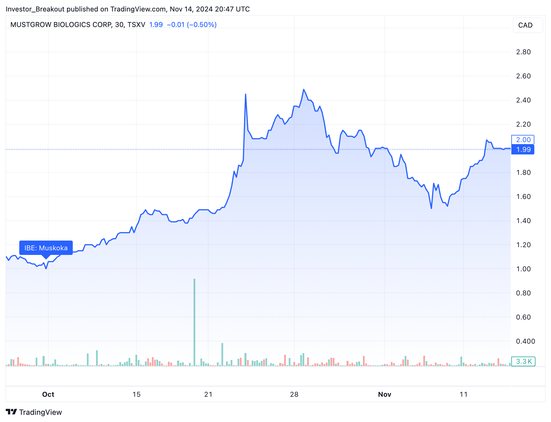 MustGrow Biologics Corp. shares are on fire as investor enthusiasm surges over the company’s transition from research and development to active commercialization of its sustainable crop protection products.