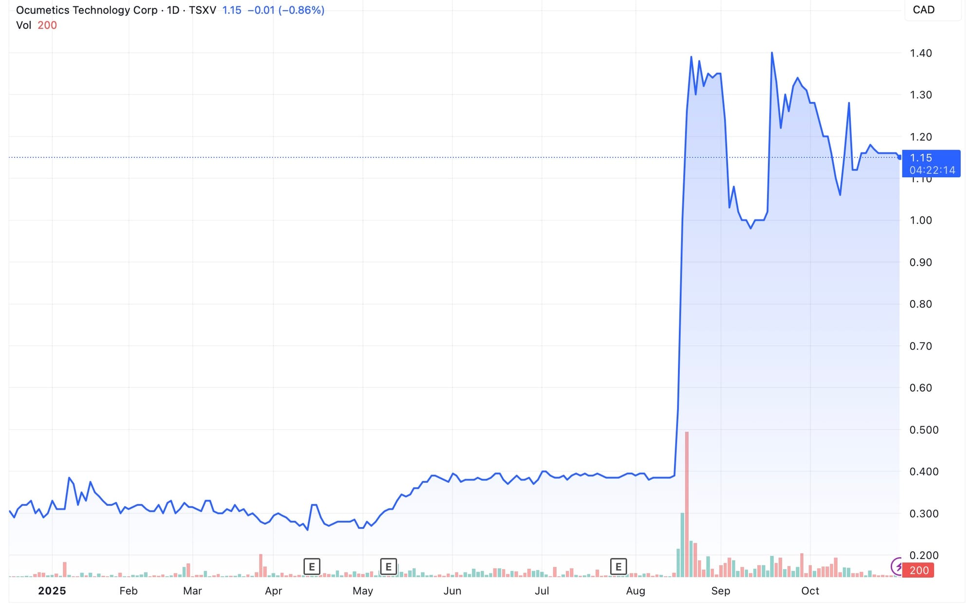- As of market open on Monday, September 29 after being selected as a Top Pick at the CEM Muskoka Capital Event.